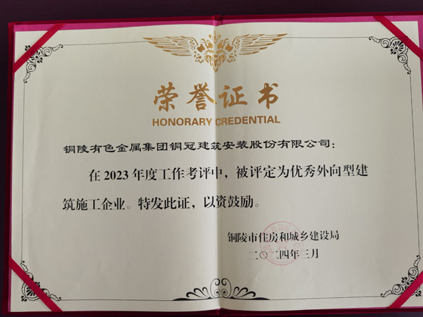 • 銅陵市優(yōu)秀外向型建筑施工企業(yè)(2023年...