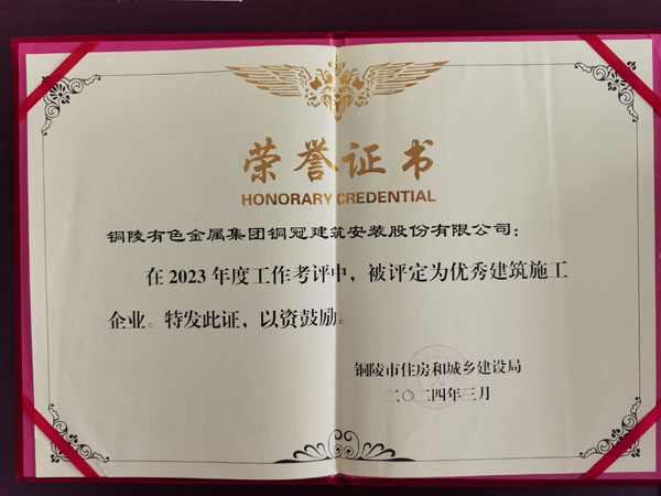 • 銅陵市優(yōu)秀建筑施工企業(yè)(2023年度)